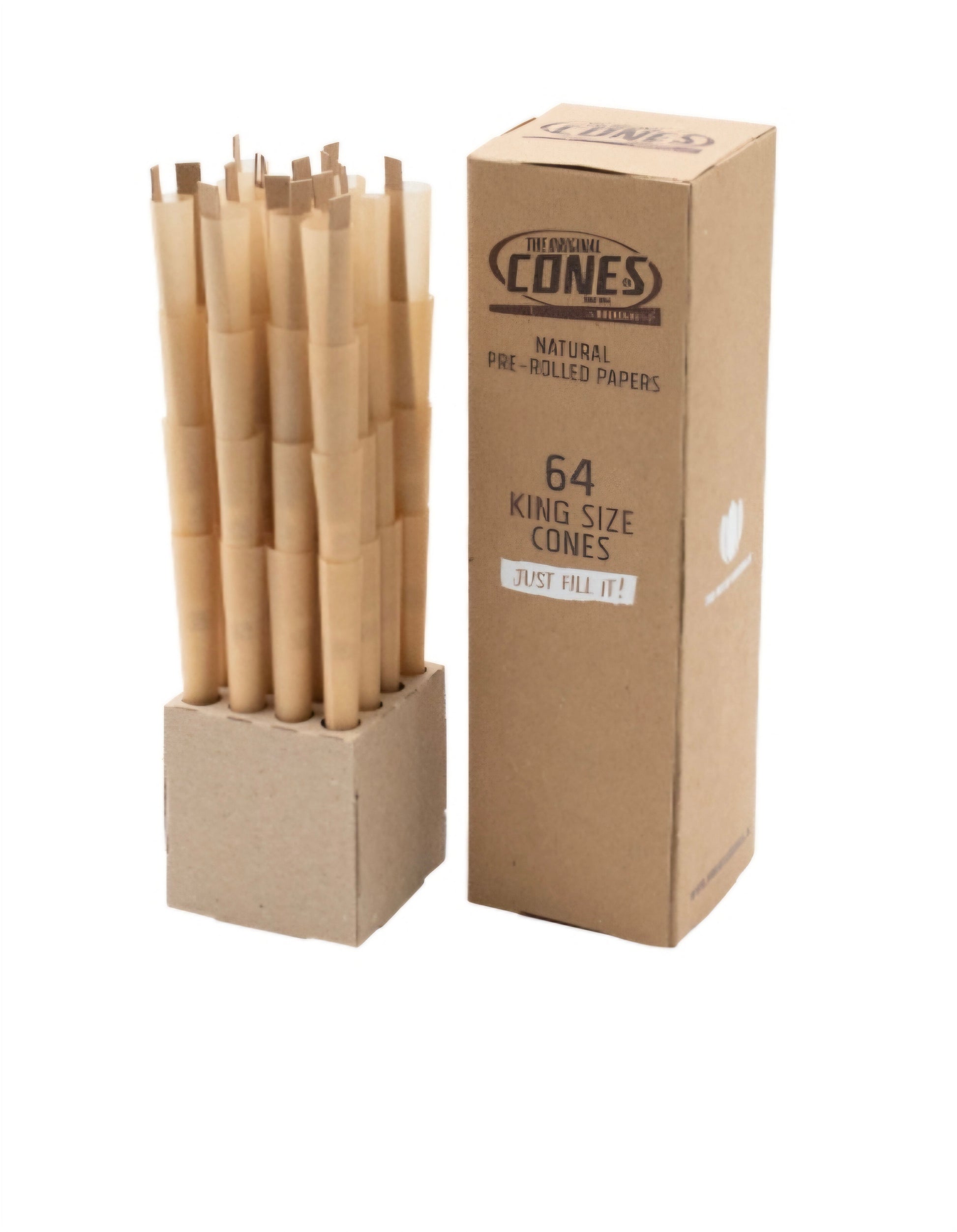 Mountain High The Original Cones King Size Cones x 64 come in the natural variant, as well as the bio organic hemp variant. Each one maintains the same unprocessed, natural baseline. Each cone is fitted with a filter for that bit of extra convenience. No more fiddling and wasting tons of papers and gerricks. Simply grab a cone and fill with your smoke of choice.